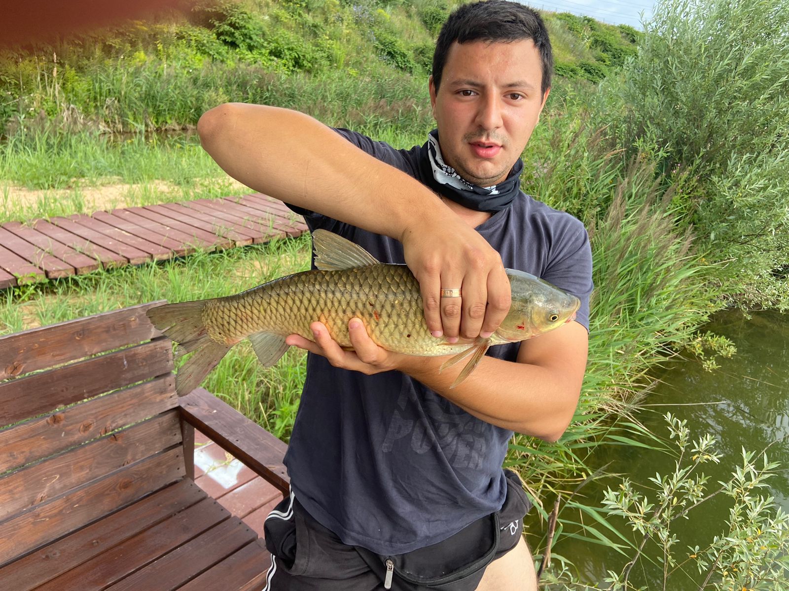 Ну а теперь о самом водоеме и что там обитает. Водоем полон карпа, окуня, белого амура, а еще там есть судак - но он очень маленький.
